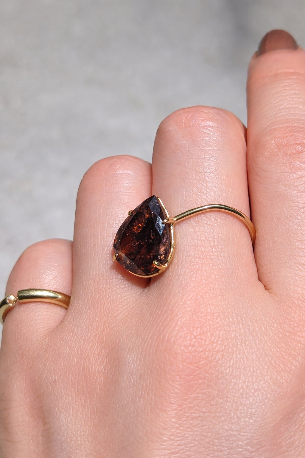 指と指の間にキューレットがはまるため、見た目以上に着け心地、指当たりが良いリングです。
