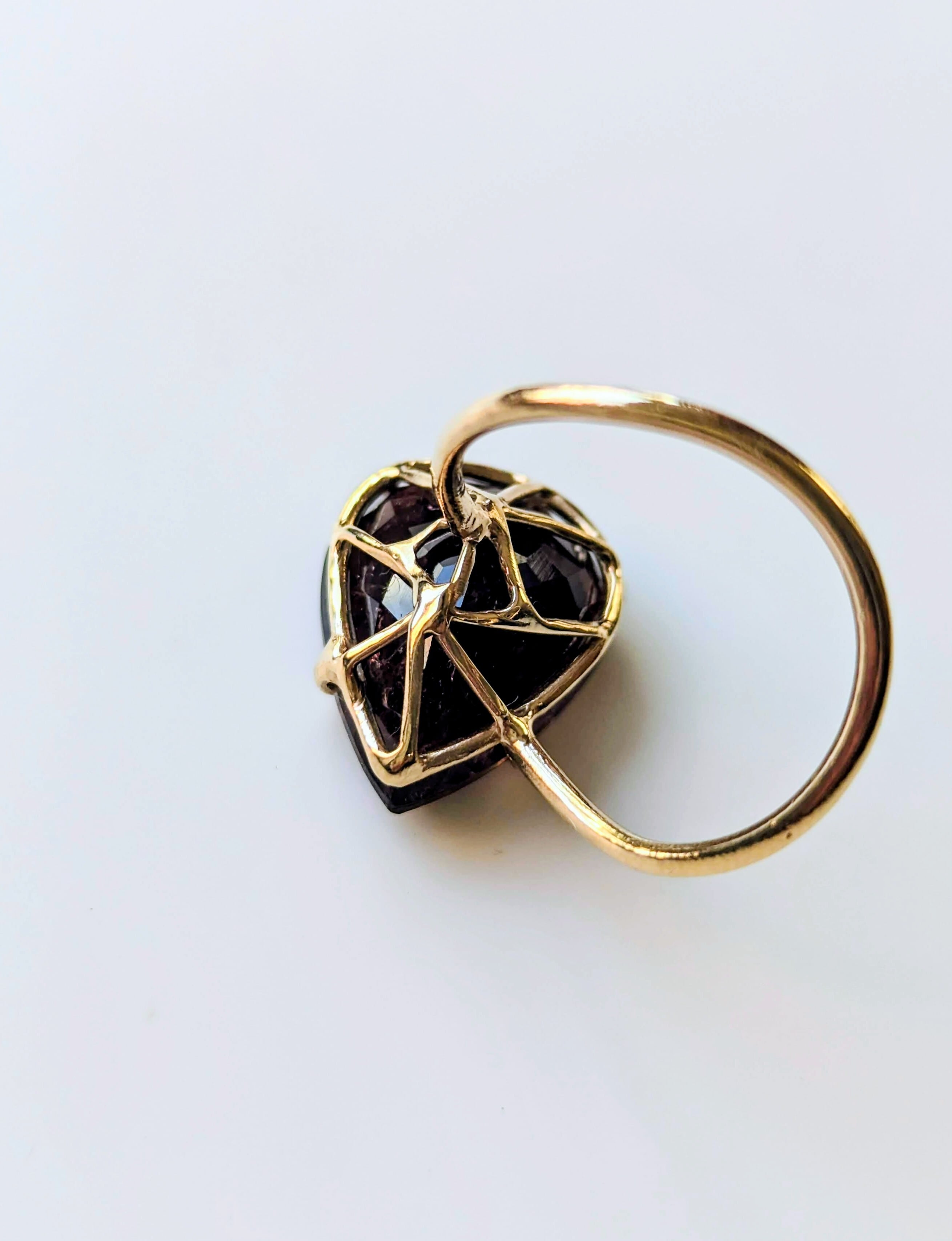 深い深いレッドカラーのトルマリンは、落ち着いた色合いですが、内包物がキラキラと光る大人っぽい一品です。