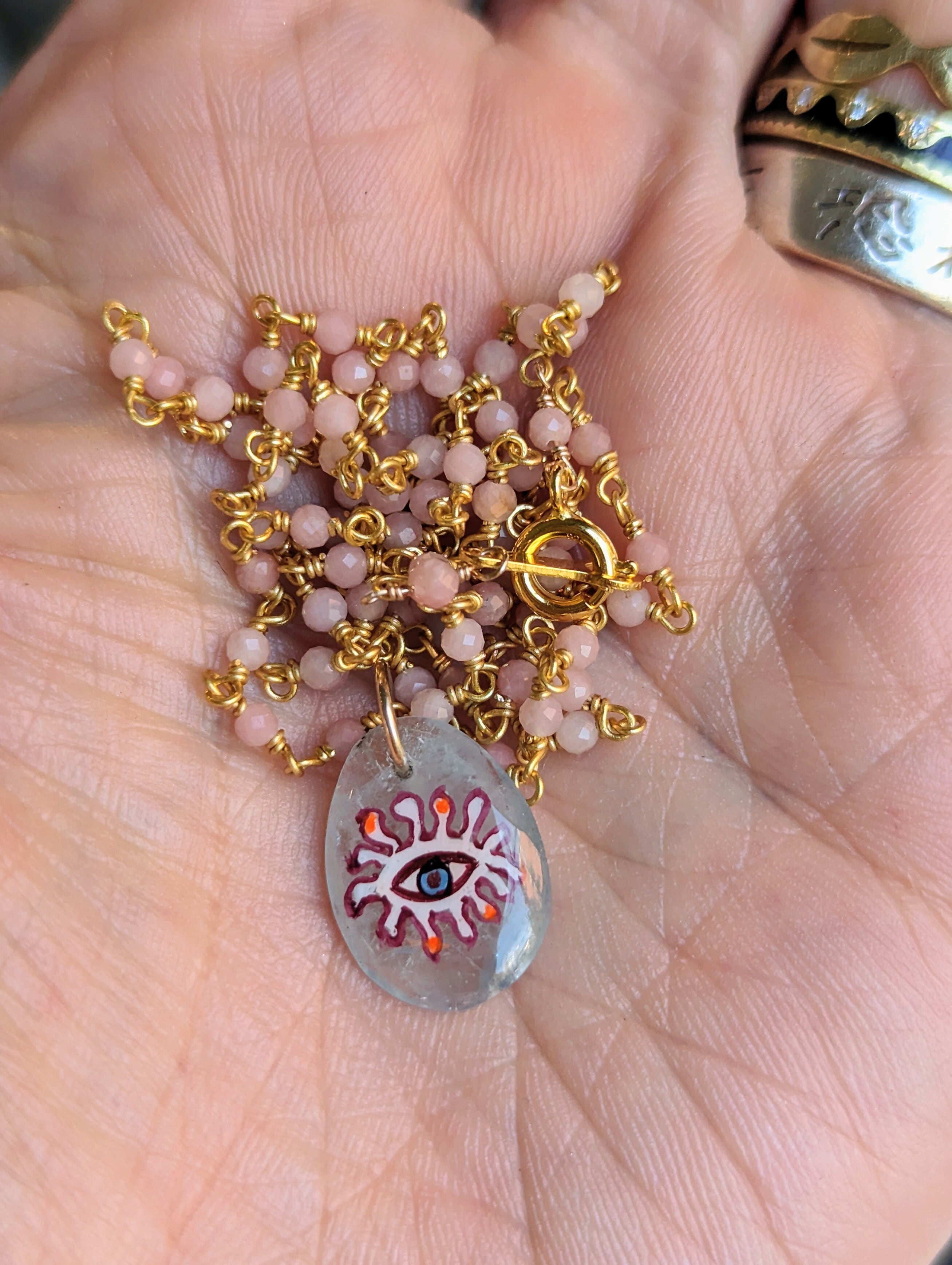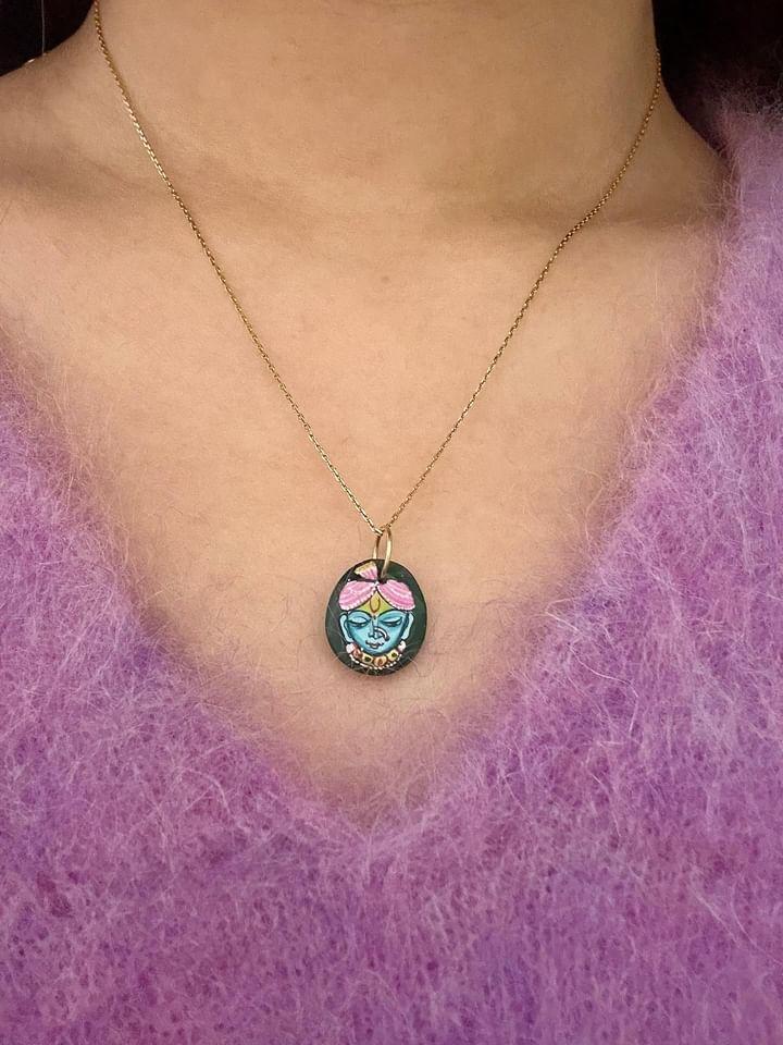 インドで厳選した天然石に、現地の細密画アーティストに描いてもらいました。