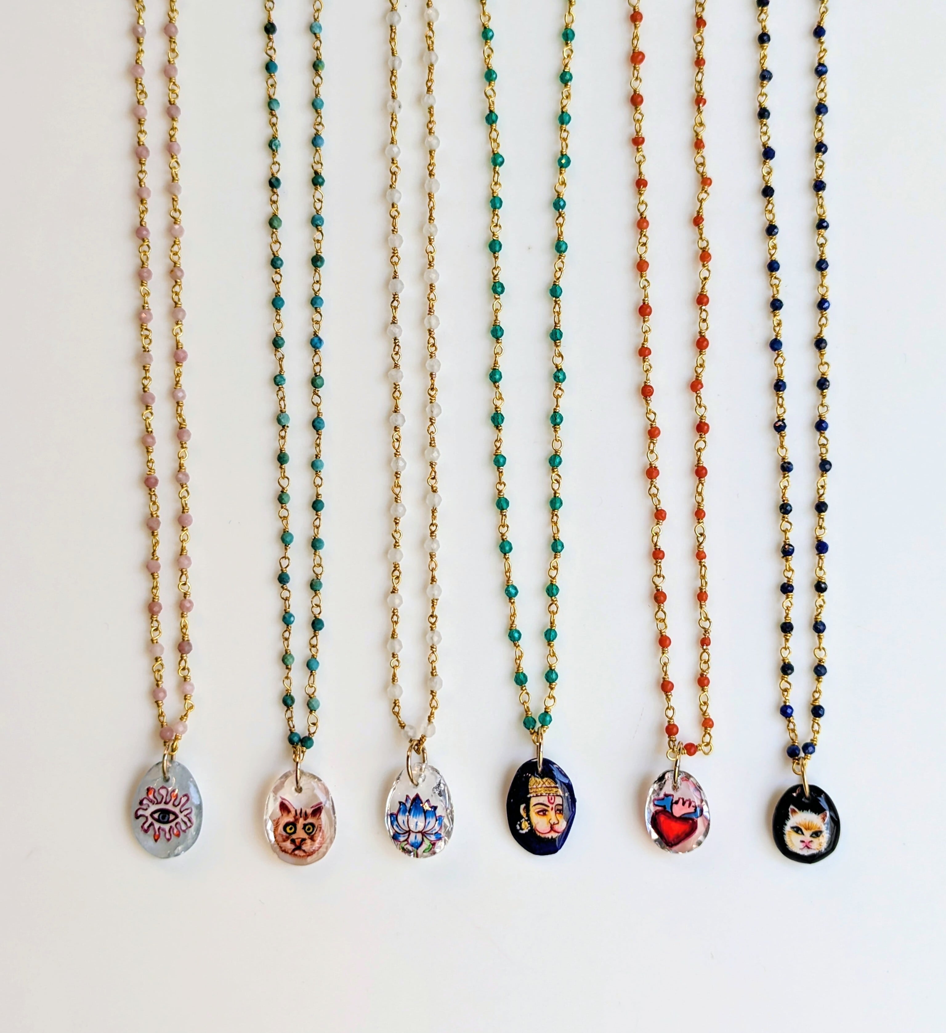 インドで厳選した天然石に、現地の細密画アーティストに描いてもらいました。