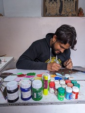 インドで厳選した天然石に、現地の細密画アーティストに描いてもらいました。