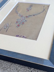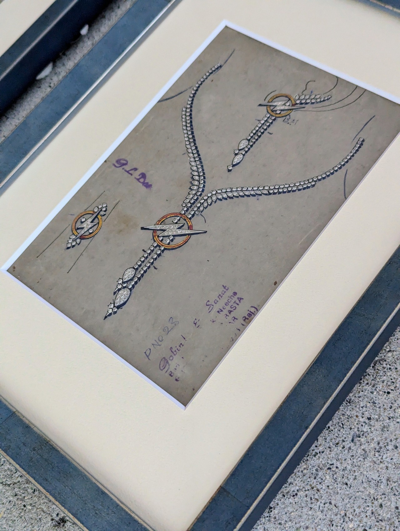 インドのアンティークショップで見つけ出した古いジュエリーのデザイン画。