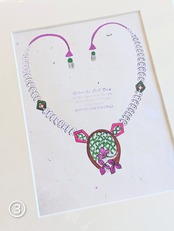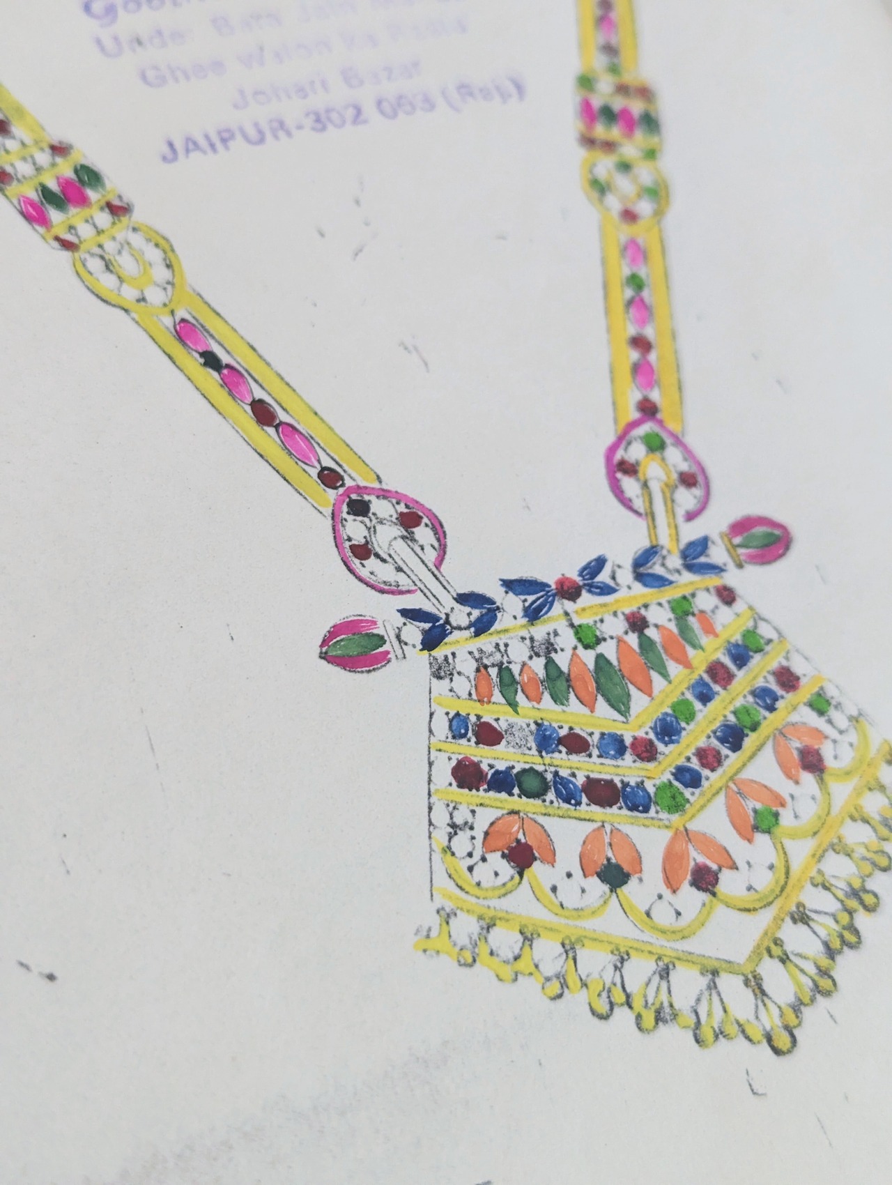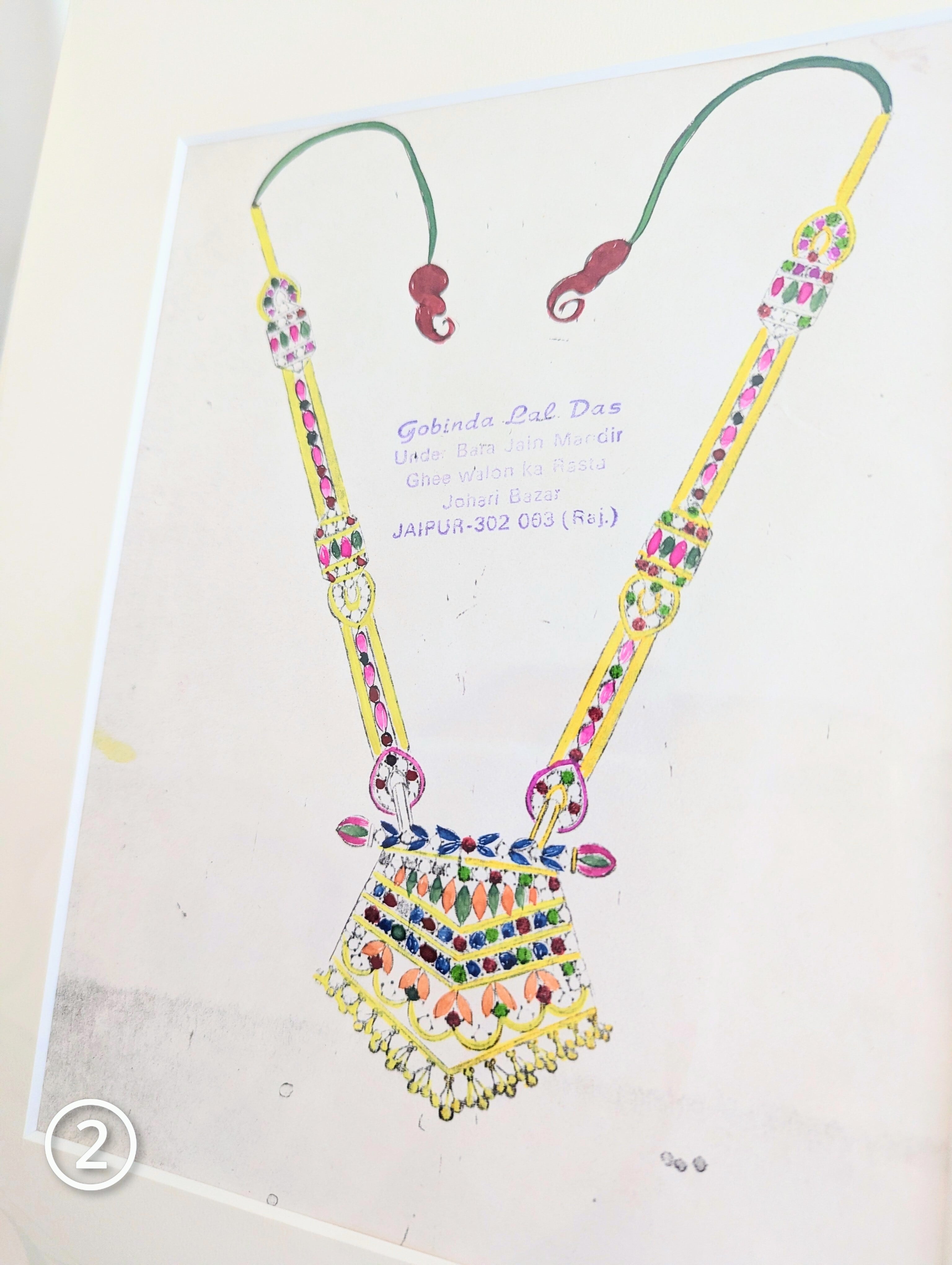 インドのアンティークショップで見つけ出したジュエリーのデザイン画。