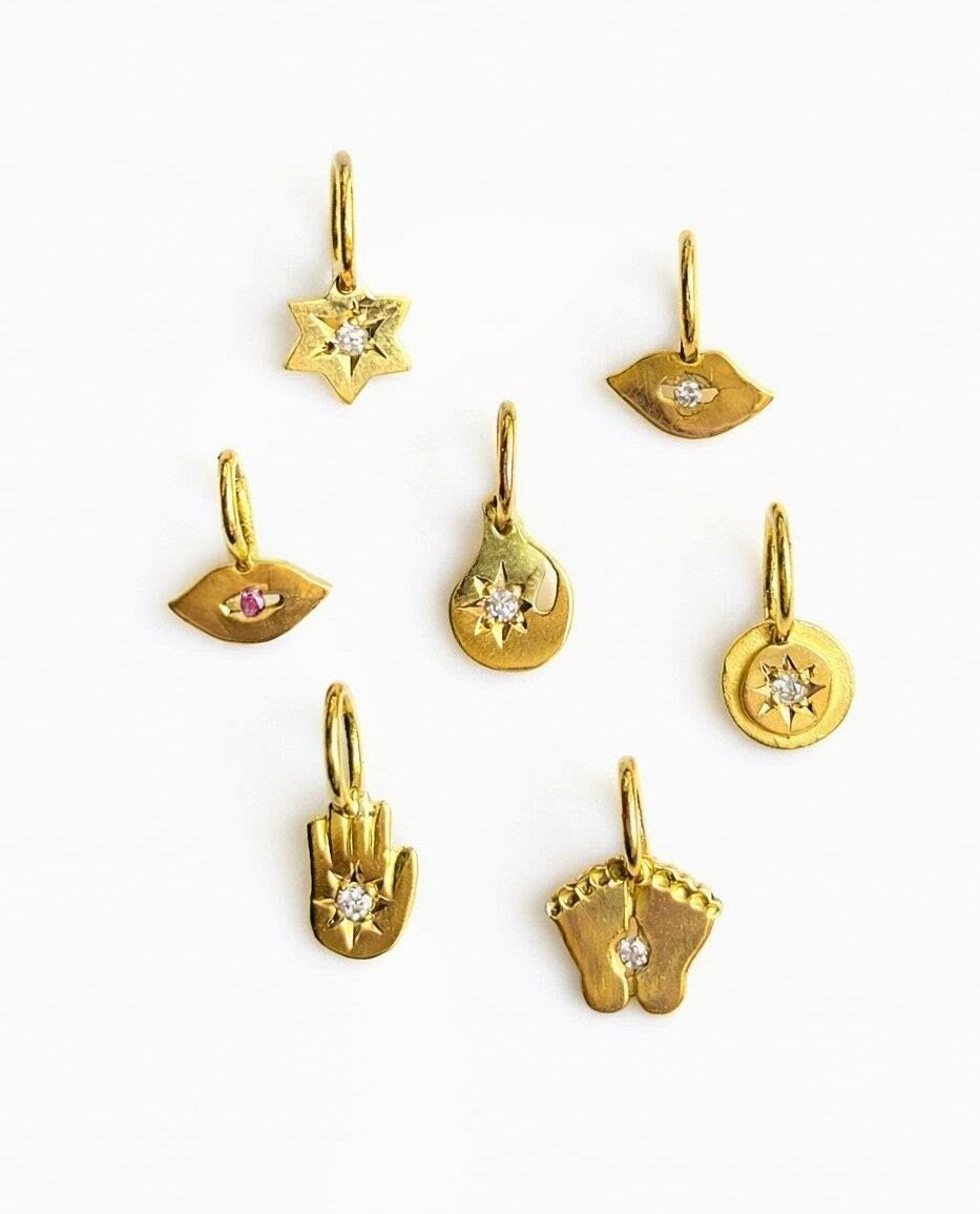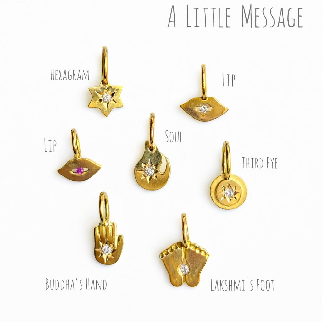 K18YG製の小さなモチーフに、宗教的メッセージや、普遍的なメッセージが込められています。