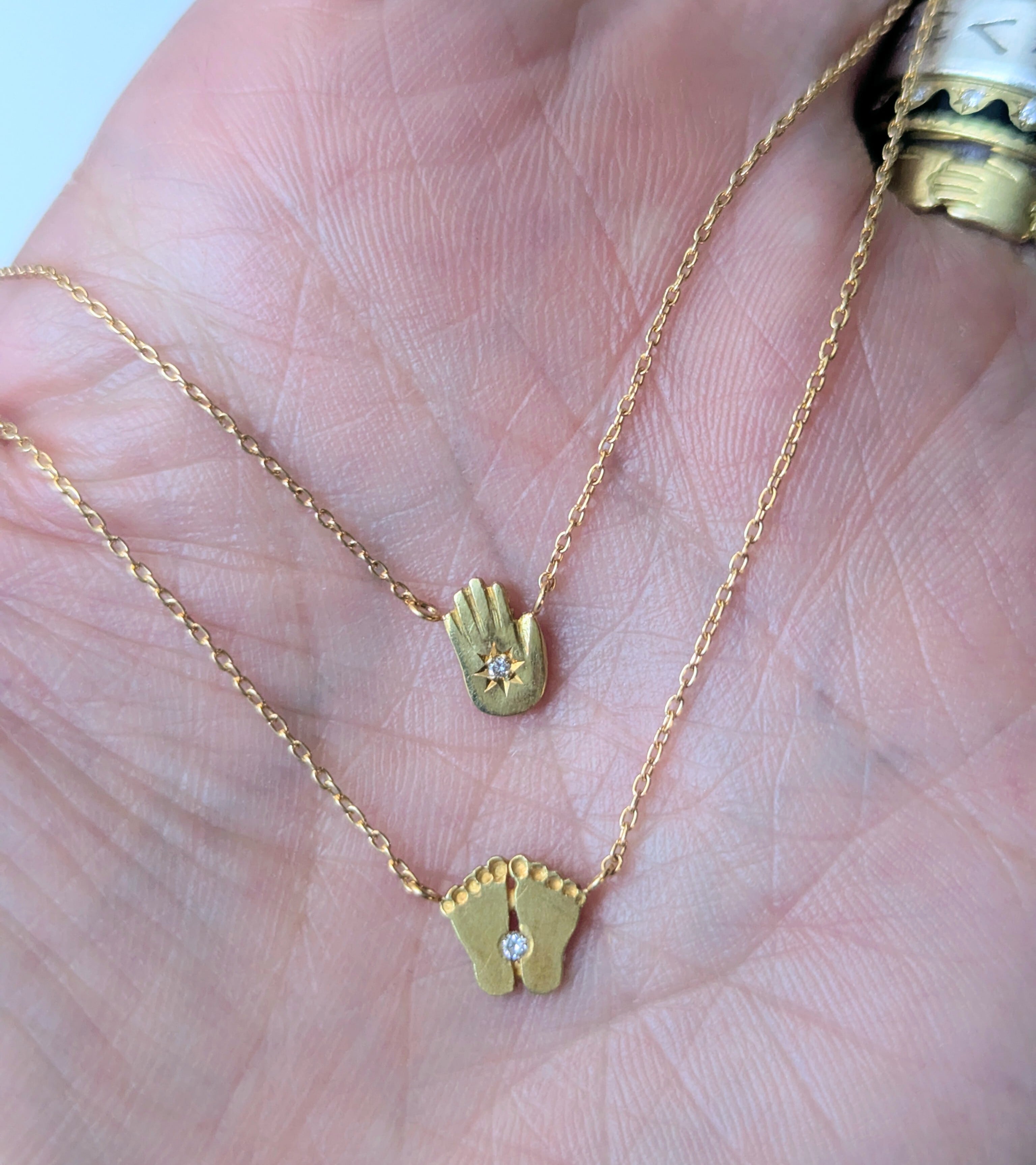 K18YG製の小さなモチーフに、宗教的メッセージや、普遍的なメッセージが込められています。