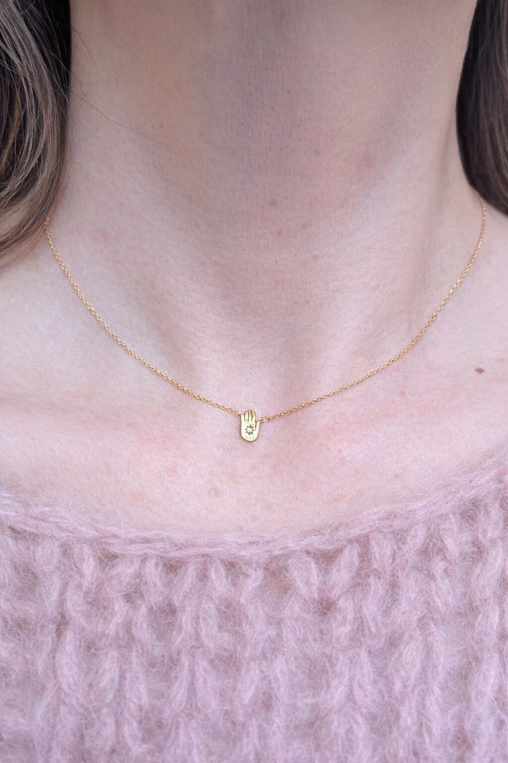 マットな18Kチェーンに、モチーフとダイヤモンドのきらめきが楽しめるネックレス。