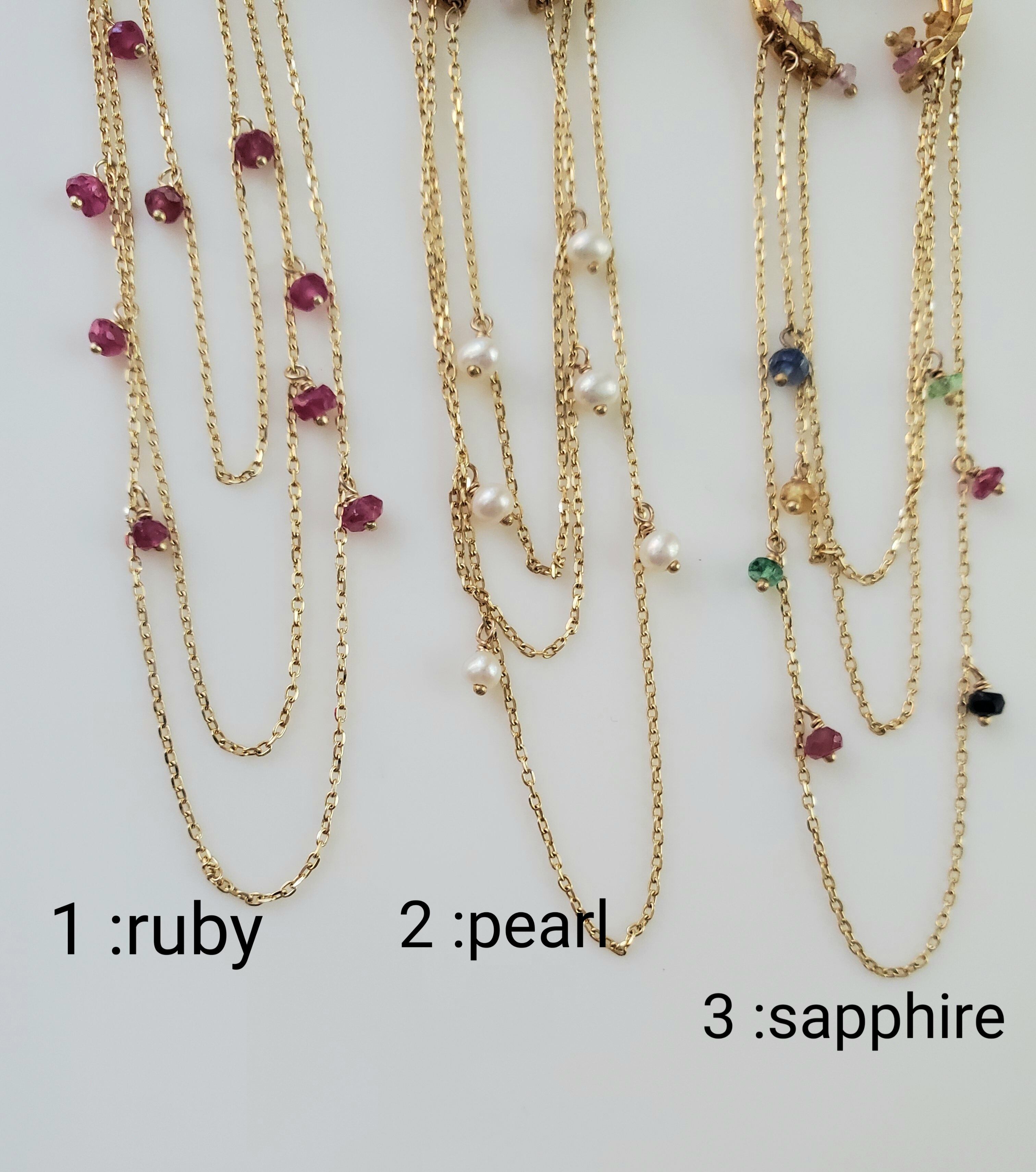 10Kのカットチェーンと天然石がキラキラと揺れます。