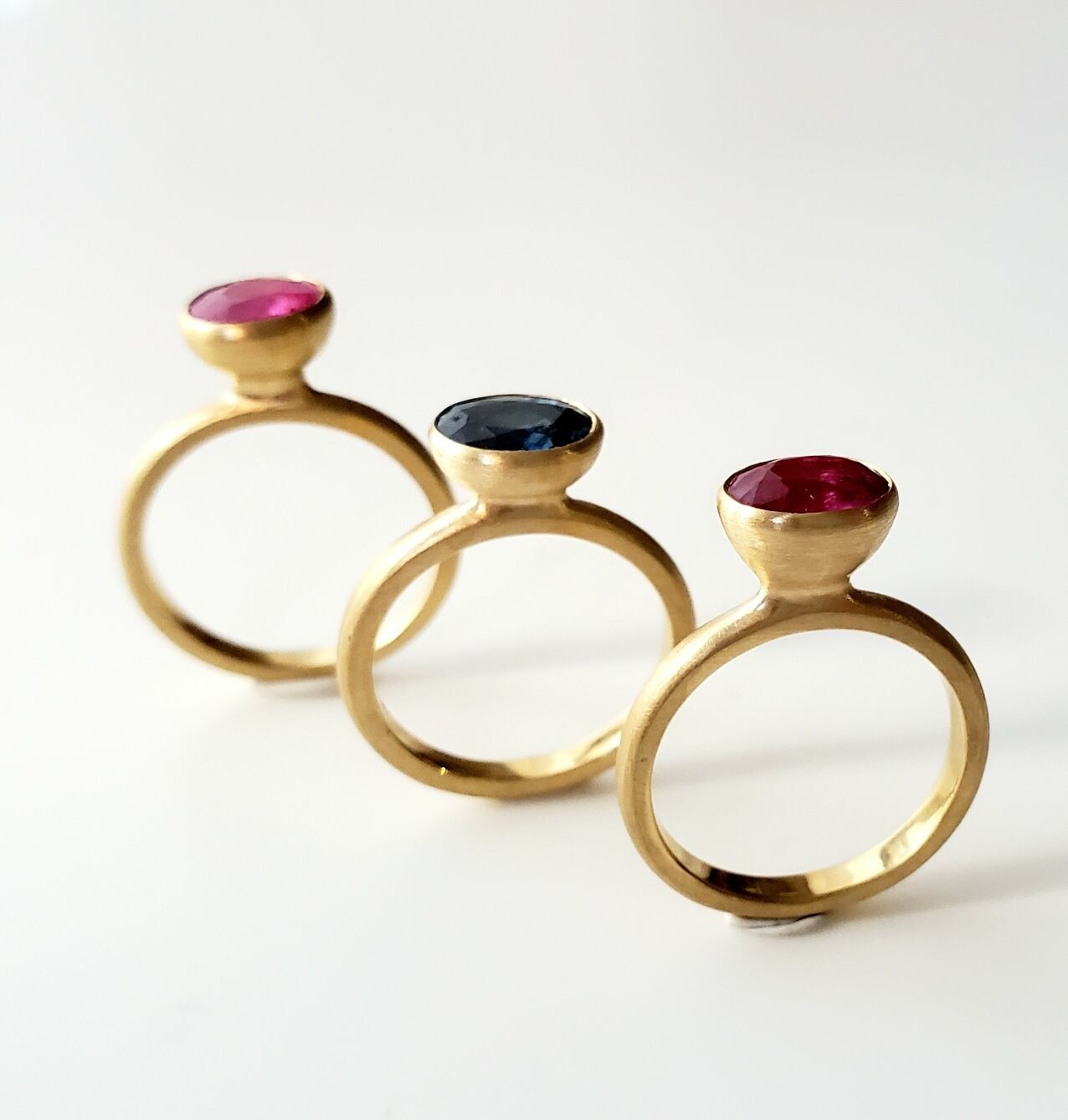 ぷっくりした石座が特徴的な、18金をたっぷり使ったルビーリング。