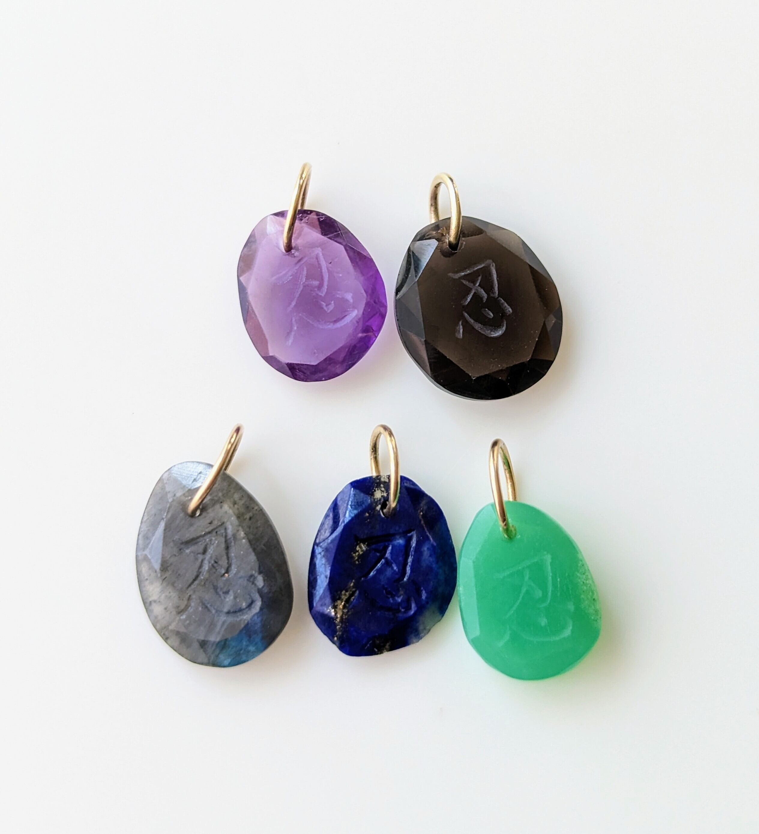インドで厳選してきた天然石に、日本で熟練の職人が文字を彫刻しています。