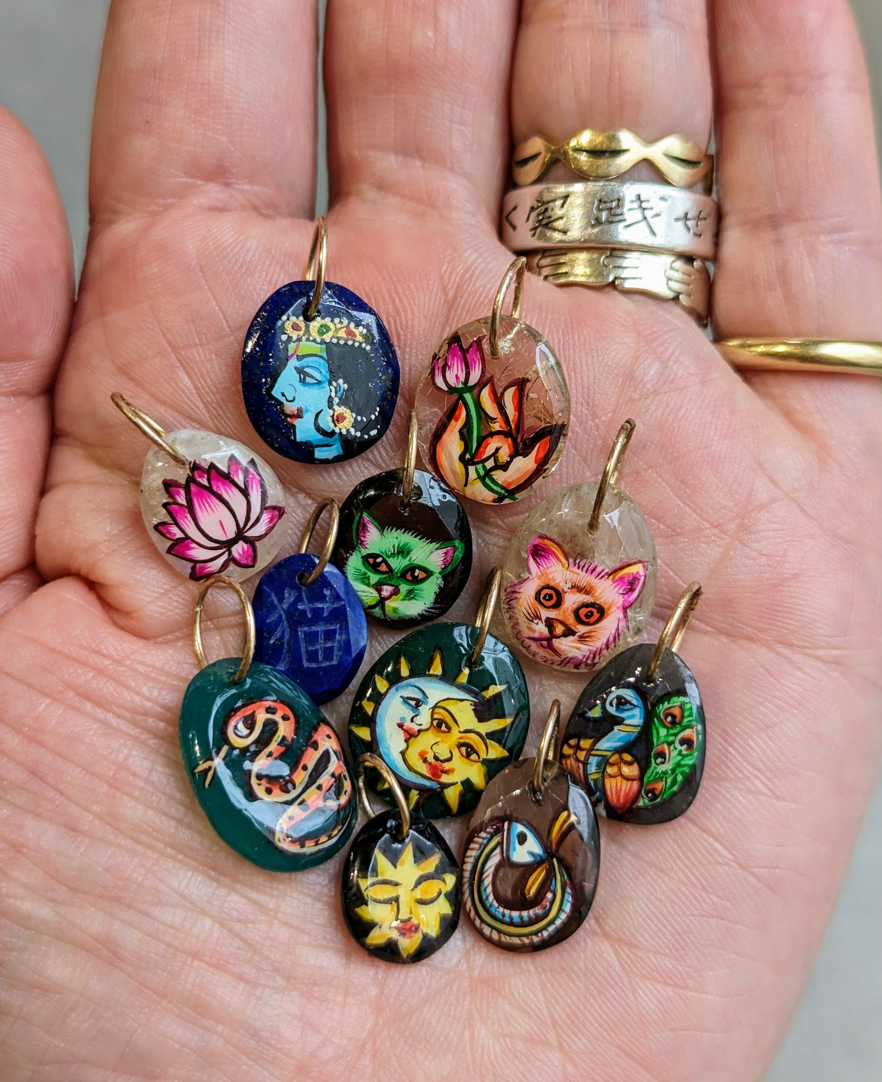 インドで厳選した天然石に、現地の細密画アーティストに描いてもらいました。