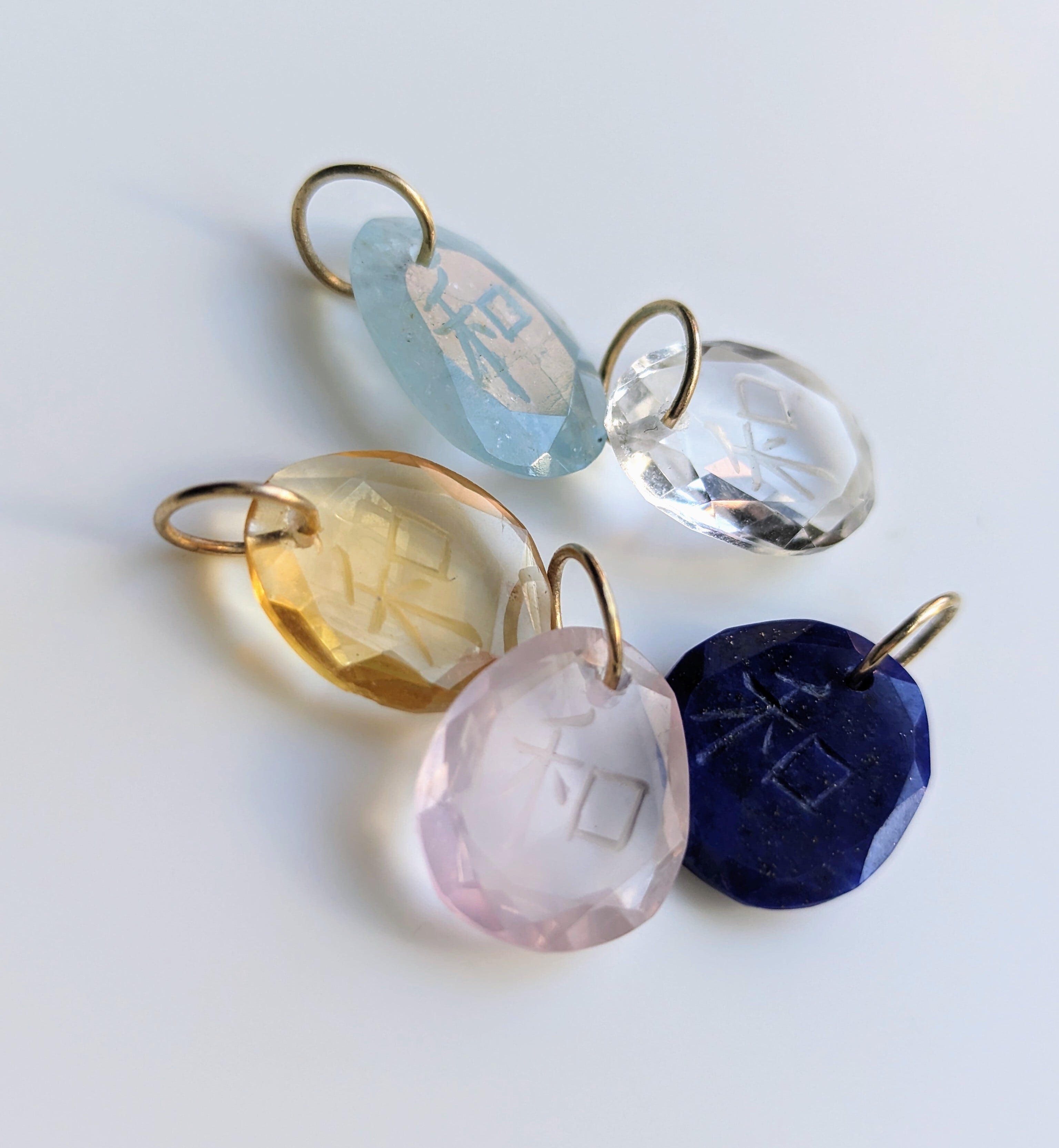 インドで厳選してきた天然石に、日本で熟練の職人が文字を彫刻しています。