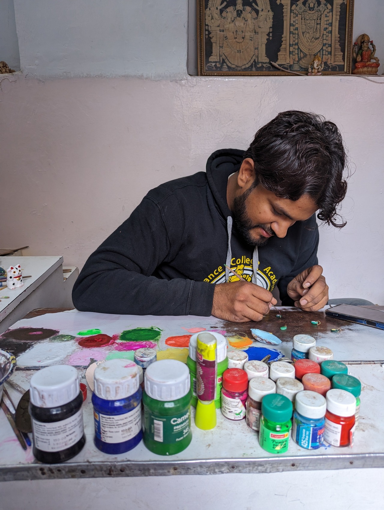 アーティスト自身もヒンズー教徒であり、筆を沢山持ち換えて、とても熱心に描いてくれました。